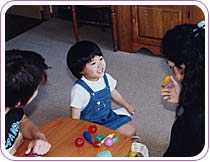 今日からパパも一緒にレッスン開始。2時間のレッスンの内、まりあは45分ぐらいで集中力が限界。朝起きて、歯を磨くというシチュエーションで親が子どもに何て言えばいいかを練習した時には、まりあは「???」状態。